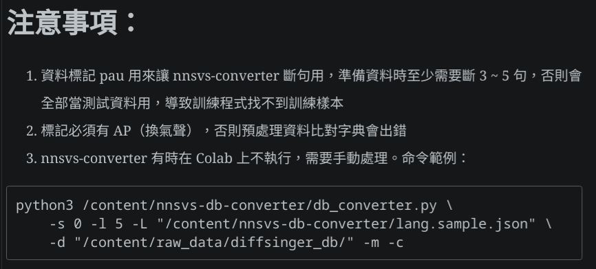(用 nnsvs-converter 強制執行解決並訓練完。onnx 輸出的時候因為路徑名稱有額外規定,差點轉不出檔案。一些規定已經標注在我的版本了)